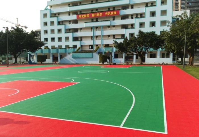 現(xiàn)在越來越多的籃球場都在使用懸浮拼裝運(yùn)動(dòng)地板,懸浮拼裝運(yùn)動(dòng)地板使用環(huán)保材料生產(chǎn)而成,環(huán)保健康。懸浮拼裝運(yùn)動(dòng)地板顏色多樣,可以設(shè)計(jì)出不同顏色的球場,給予球員不一樣的運(yùn)動(dòng)感受。懸浮拼裝運(yùn)動(dòng)地板場地效果好,不浮夸耀眼,不吸光不反光不刺眼,能帶給運(yùn)動(dòng)員更舒適的視覺感。同時(shí),對于籃球這類運(yùn)動(dòng)場地,其不同的顏色搭配能形成更鮮明和諧的對比,懸浮拼裝運(yùn)動(dòng)地板適合用于室外籃球場。